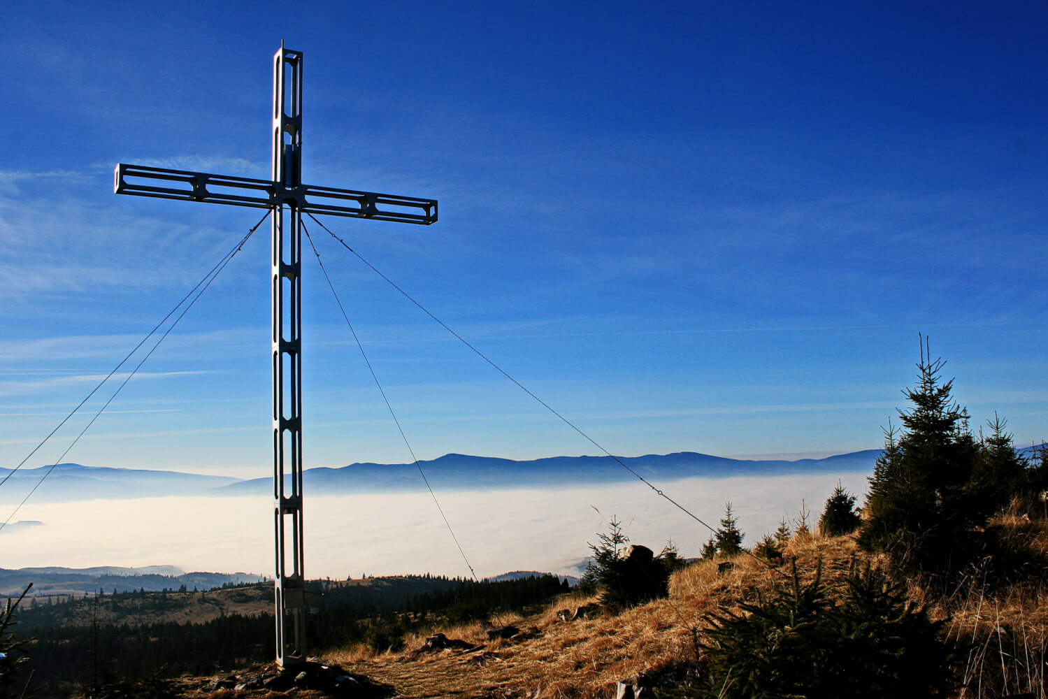 A csúcson álló keresztet „Uram, jó nekünk itt lenni!” mottóval 2004. augusztus 7-én szentelték fel Urunk színeváltozásának ünnepén, a XIII. EKE Vándortábor alkalmával. Azóta a Pricske-tető zarándokhellyé vált, így minden év augusztusában búcsút tartanak itt, a gyergyói Táborhegyen. Elfogyasztjuk az ebédünket, megpihenünk, fotózunk, majd elindulunk lefelé, Gyergyószentmiklós irányába.