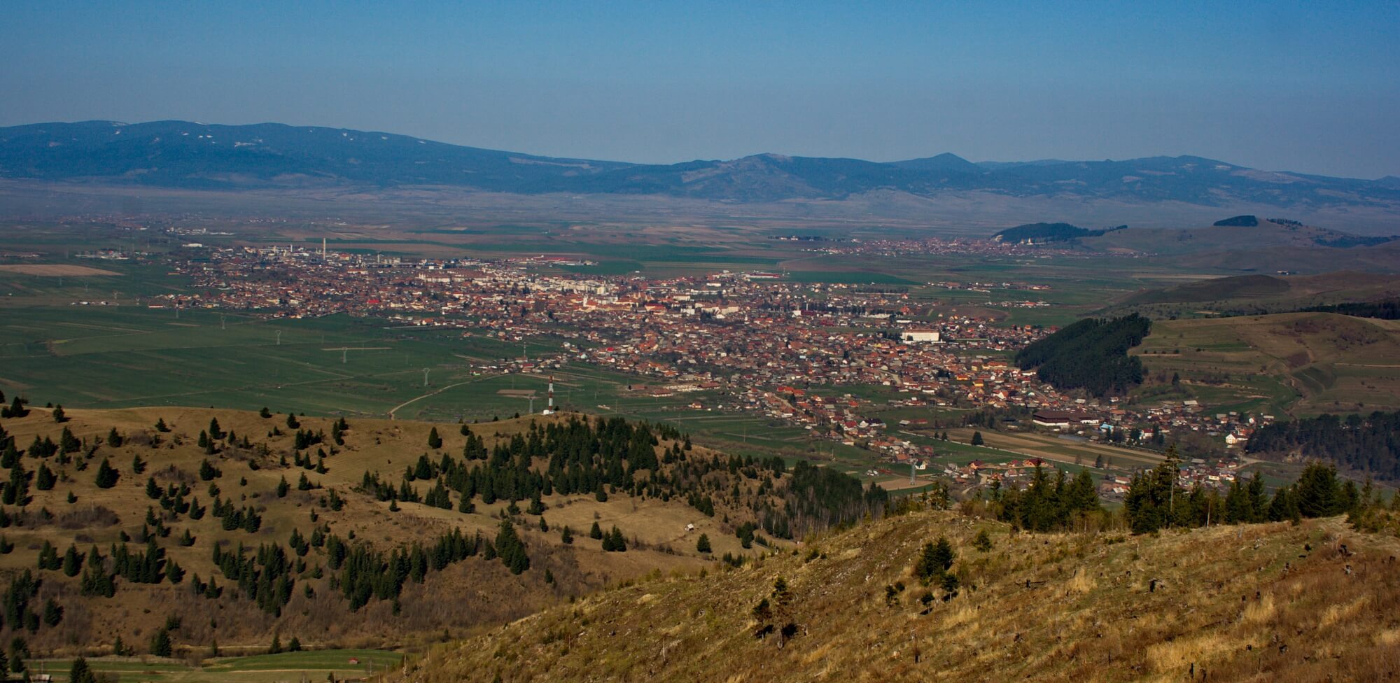 Hat km megtétele után beérünk egy gyérerdős területre, a Kék-patak fejébe, az 1200 m tengerszint feletti Sipos kapuja dülőbe. Innen lehet megközelíteni a Súgó-barlangot. Egy rövid, 500 méteres séta után gyönyörű kilátás nyílik a Gyergyói-medence déli csücskére, feltűnik Heveder, Vasláb, távolabb a Hargita vonulata, a Libáni-hágó, a Görgény déli szakasza és a Fekete Rez, ahol a Maros forrása (1538 m) található.